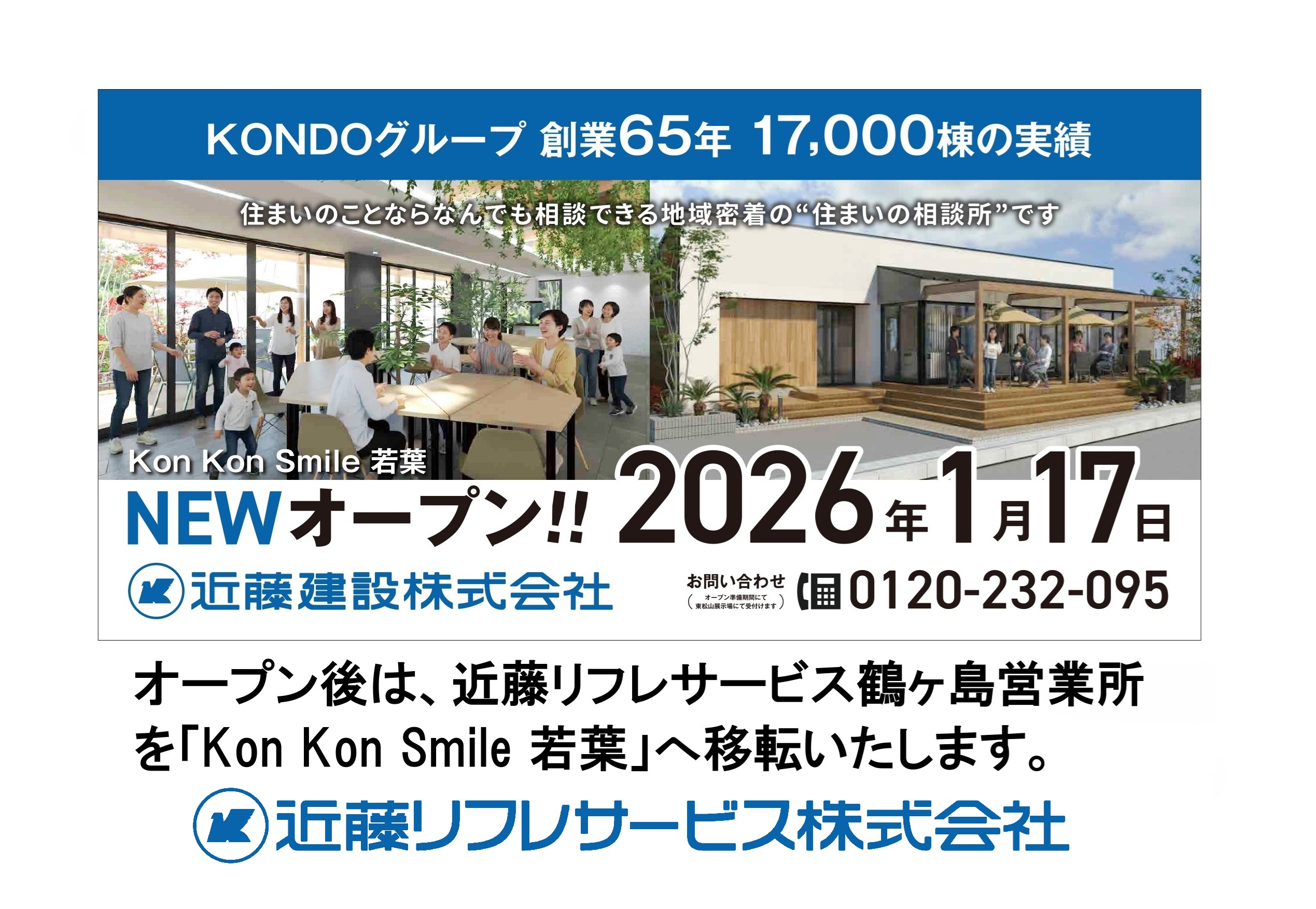 オープン後は、営業所を「Kon Kon Smile 若葉」へ移転いたします。