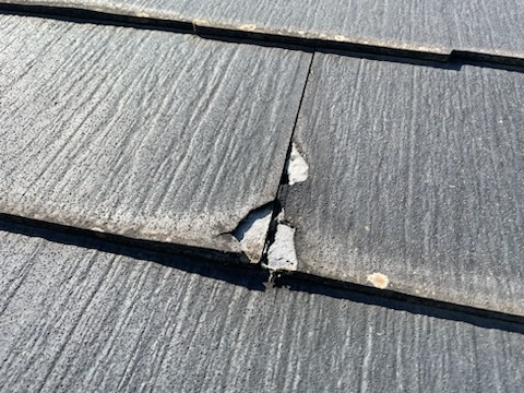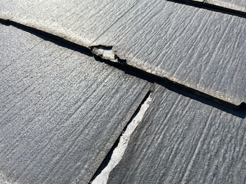表面の色褪せ・塗装剥がれ 既存の黒系スレートの表面劣化が進行